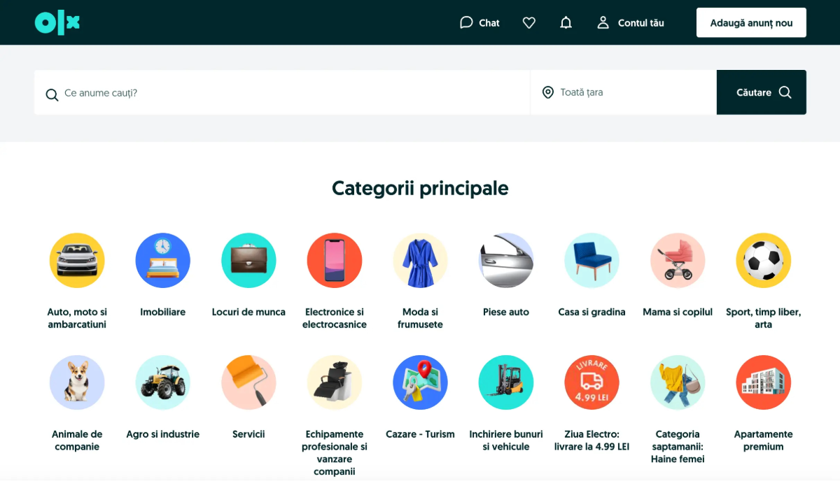 OLX.roは、ルーマニア最大級のC2Cマーケットプレイスとして、多くの個人ユーザーや小規模業者に利用されています。家具・家電・自動車・ファッションなど多様なカテゴリが揃い、目的の商品を探しやすい構造です。