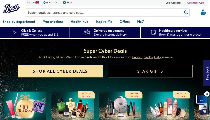 - 特徴:イギリスを代表するドラッグストアチェーン。ヘルス&ビューティーの総合プラットフォーム