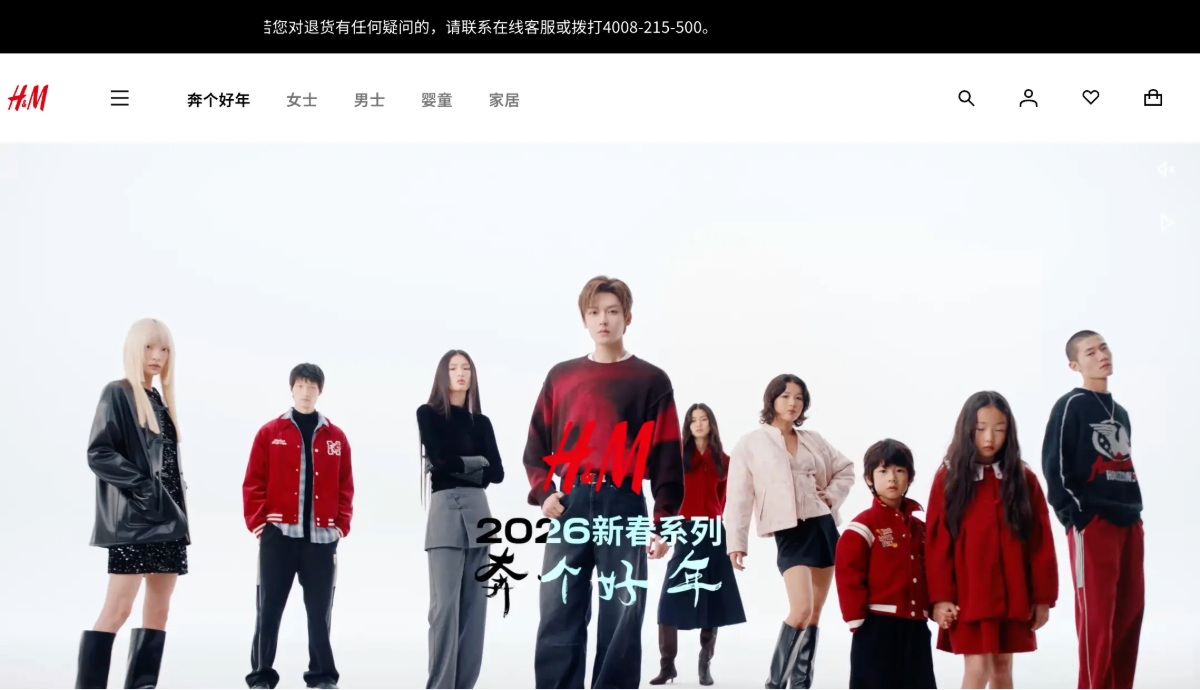 - 特徴:ファストファッションブランド「H&M」の中国版公式サイト。オンラインストア機能と実店舗検索機能を兼ね備えています。
