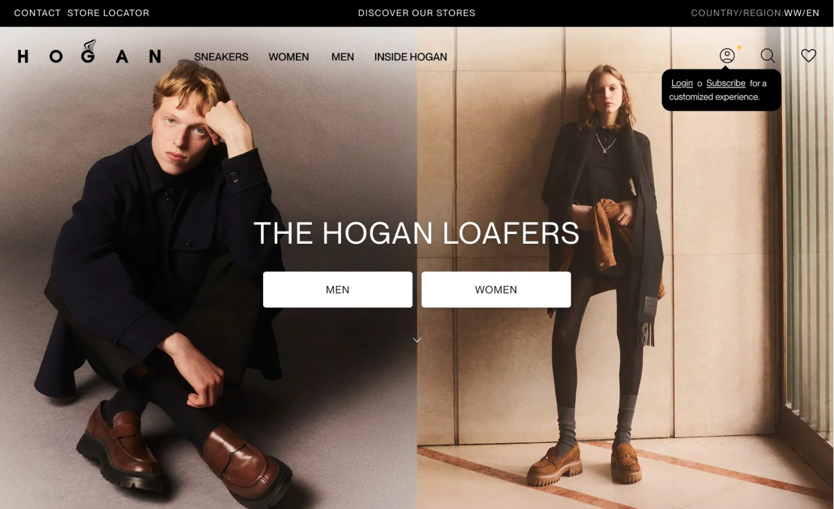 Hoganの公式オンラインストア(https://www.hogan.com/)は、シンプルかつ洗練されたデザインで、初めての方でも比較的使いやすい構造となっています。日本語ページの対応は限定的ですが、英語やイタリア語を基準にすれば、商品検索や購入手続きはスムーズに進められます。以下では、実際の購入ステップを順を追って解説します。