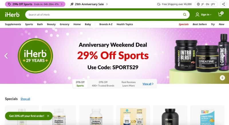 2025年現在、iHerbの割引キャンペーンは週替りセール+初回限定+カテゴリ別プロモが中心となっています。特に「初回購入割引」は、プロモコード入力で10〜20%オフになることが多いため、初めての方は必ず確認しましょう。