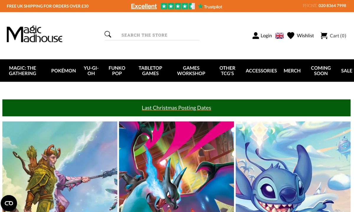 Magic Madhouse(マジックマッドハウス)は、イギリスを代表するトレーディングカード・ボードゲーム専門ショップとして、長年にわたり多くのユーザーから支持されてきました。日本国内では入手しづらい欧州流通の商品や、海外製ボードゲームを購入できる点は、海外通販ならではの大きな魅力といえるでしょう。一方で、英語表記のみであることや、送料・関税といった日本国内通販にはない要素が存在するため、事前の理解が欠かせません。