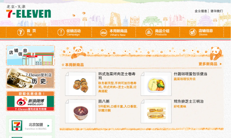 - 北京など中国大都市圏で展開されている7‑Elevenの公式ポータル